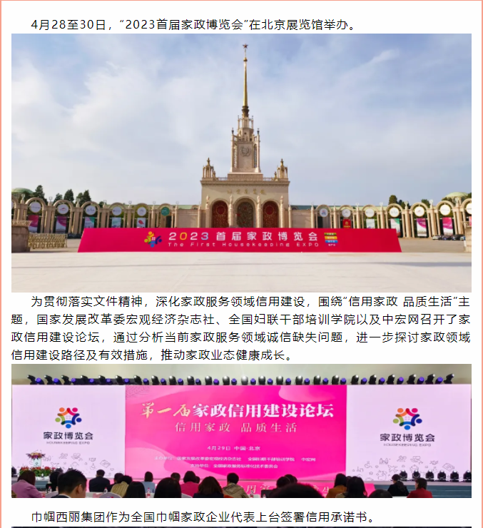 2023家政博覽會在北京展覽館舉辦,巾幗西麗集團(tuán)上臺簽署信用承諾書